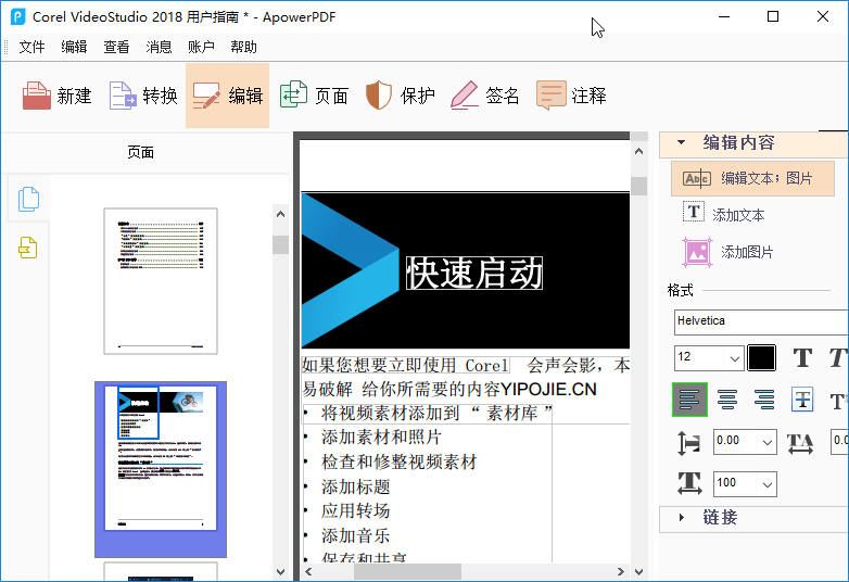 ➤ 文本、图片编辑及页面管理